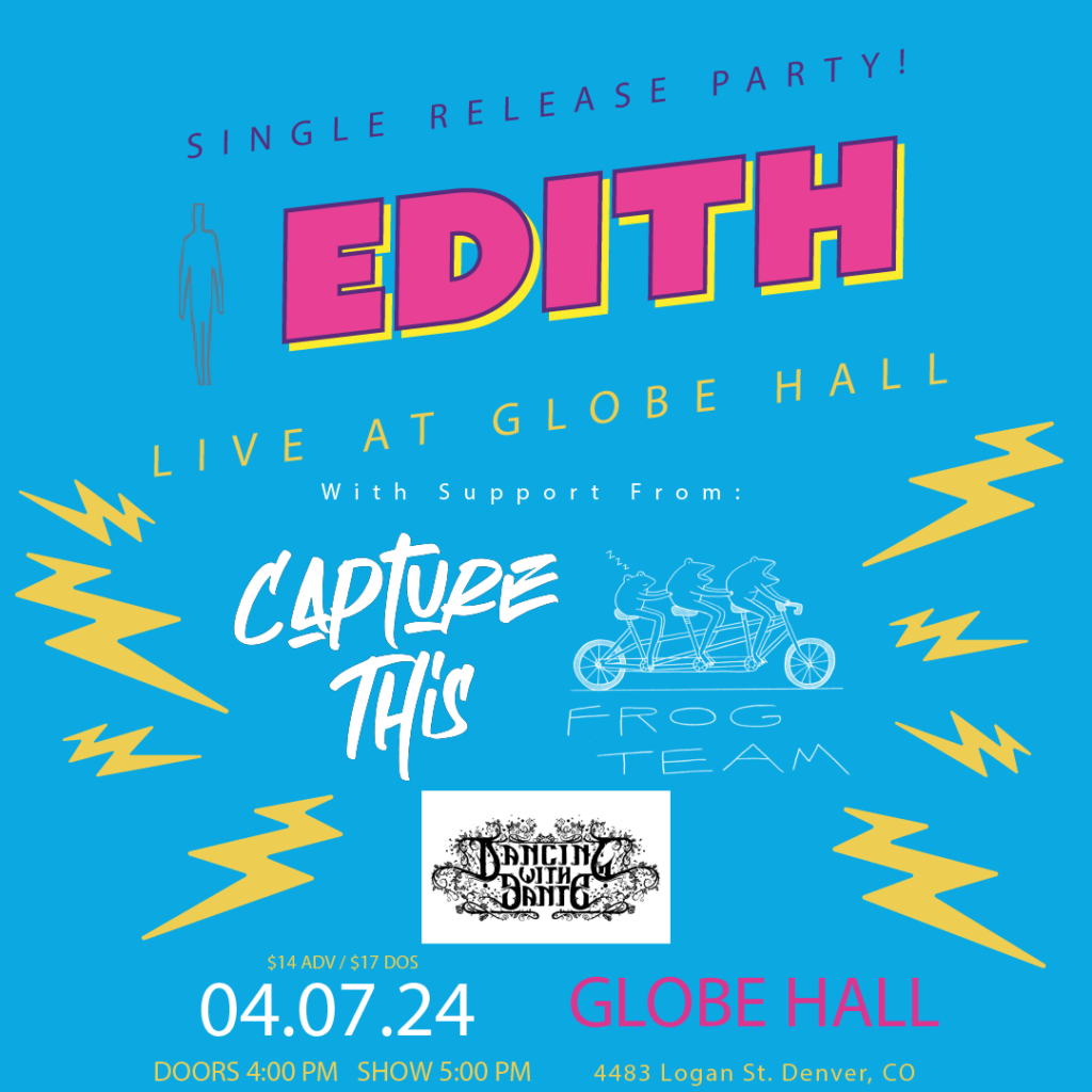 Globe Hall Presents EDITH with Capture This, Dancing With Dante and Frog Team on Sunday, April 7th.- 16+, under 16 admitted with a ticketed parent or guardian