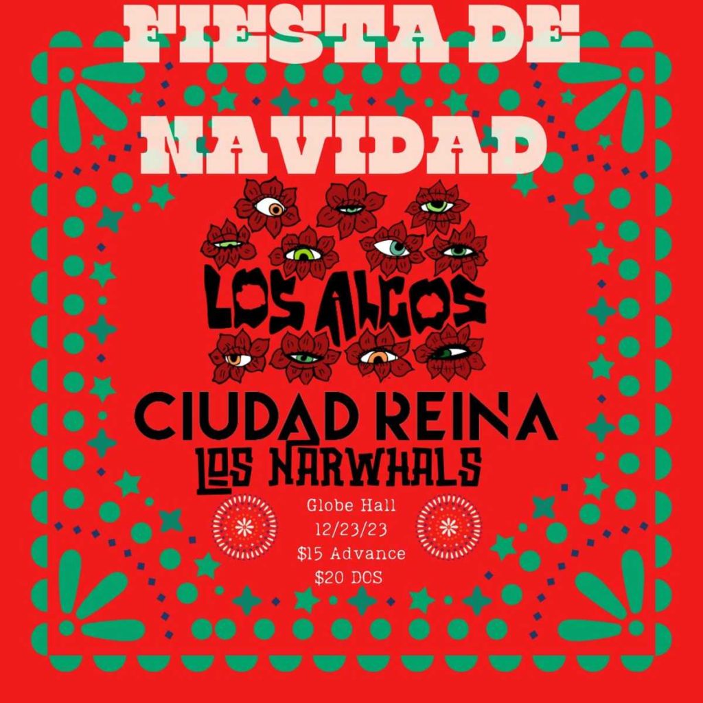Globe Hall Presents Fiesta De Navidad Featuring Los Alcos with Ciudad Reina and Los Narwhals on Saturday, December 23rd. – 16+, under 16 admitted with a ticketed parent or guardian